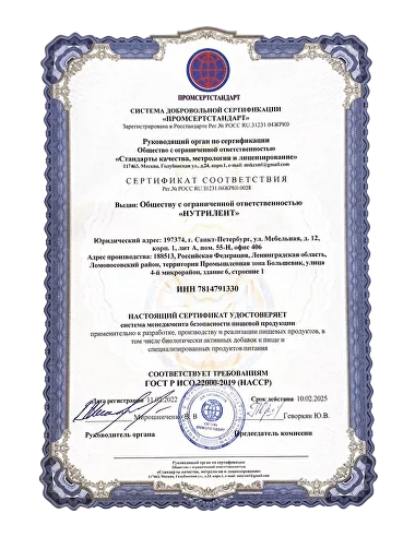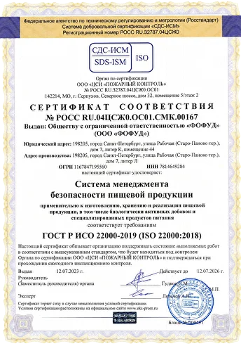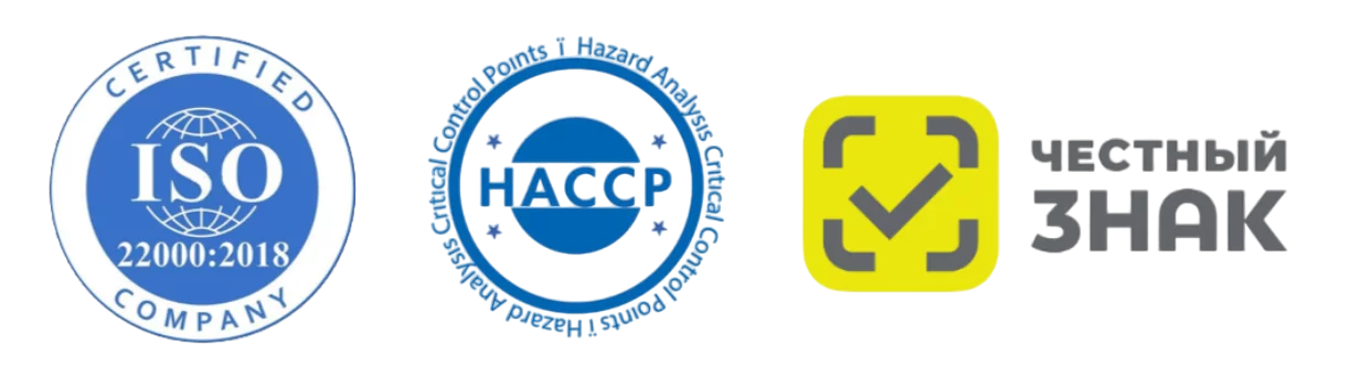 The production is certified by HACCP, ISO and is marked with an Honest SIGN.